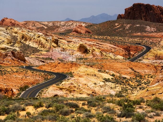 В восьмидесяти километрах от Лас-Вегаса на площади в 16000 гектар располагается одно из самых прекрасных и загадочных мест США - Valley of Fire (Долина огня) Ярко красные горы из песчаника юрского периода, покрытые известняком образовались после того как воды мирового океана отступили и позволили ветру сделать свою ювелирную работу. Скалы скрывают в себе следы давно ушедших цивилизаций. Первые люди на этой земле появились примерно 11000 лет назад. Ярким свидетельством этому служат наскальные рисунки - петроглифы. Из растительности в парке преобладают кустарники а также встречается несколько видов кактусов. Животный мир пустыни предоставлен в основном ночными животными: койот, лисы, скунсы а также различные змеи и ящерицы. Одним из редчайших видов охраняемым законом является пустынная черепаха. Весна и осень - предпочтительные сезоны для посещения Долины Огня.