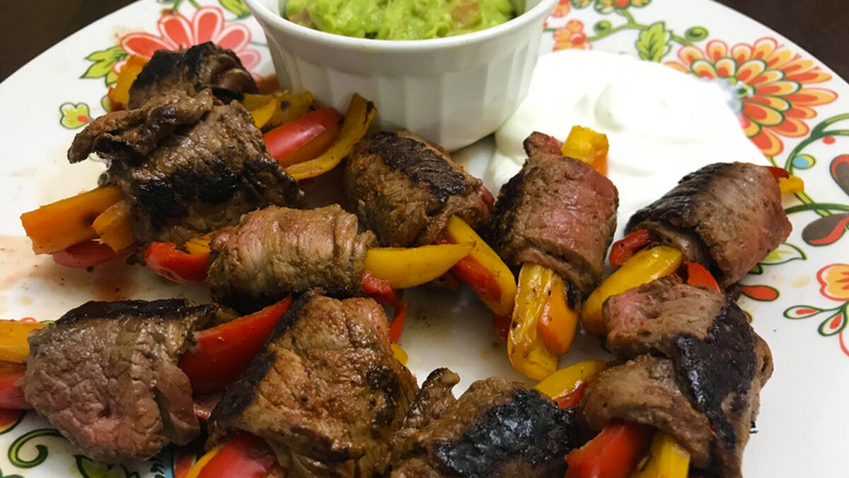 Это замечательное блюдо отлично подходит для обеда или ужина. И, как любое кето-блюдо, оно содержит массу жиров и белков и минимум углеводов. Говядина - один из основных продуктов на кето-диете. С этим рецептом вы можете создать из куска вырезки настоящее произведение кулинарного искусства. Вам потребуется нарезать мясо тонкими полосами, поэтому попросите в мясном отделе нарезать их сразу или купите уже нарезанную говядину. Этот рецепт рассчитан на 2 порции вкуснейших фахито-роллов. Калорийность 1 порции: 529ккал Жиры: 27г. Белки: 55г. Углеводы: 16г. Клетчатка: 6г. Чистые углеводы: 10г. Ингредиенты Инструкция Разрежьте перец на полоски 1-1,5см и обжарьте до полуготовности. Нарежьте говядину тонкими полосами (если вы не купили уже нарезанное мясо). Натрите приправами в подходящем вам количестве. Берите по 3 полоски перца разного цвета, оборачивайте этот пучок куском говядины и закрепляйте зубочисткой. Обжарьте получившиеся роллы 1-2 минуты с каждой стороны. Соус Мелко нарежьте или изме