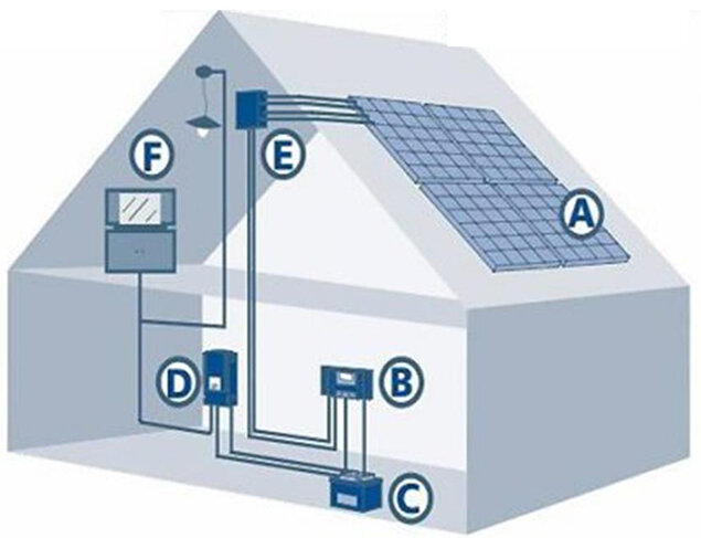 - Получение постоянного тока при помощи энергии, накопленной фото-ячейками (набор полупроводниковых элементов), установленными на крышах домов. Далее, постоянное напряжение преобразовывают в переменное для использования электричества в домашнем хозяйстве.