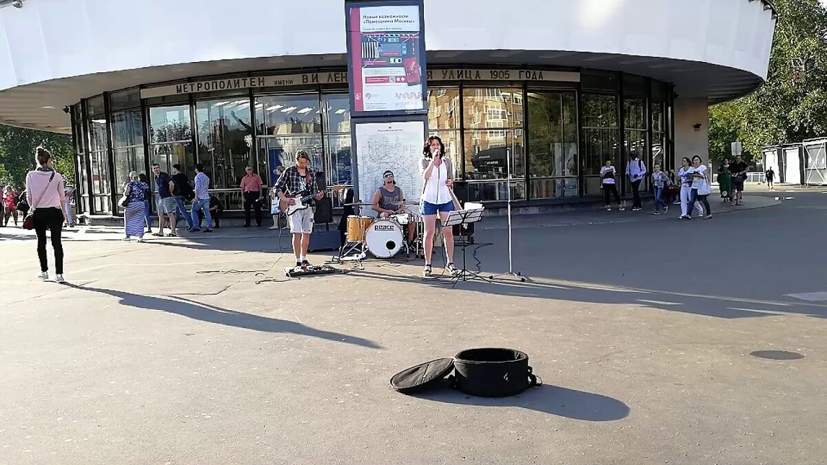 Вокруг памятника героям революции 1905 года, уже привычно вписавшегося в пейзаж и больше не пугающего своими размерами, толпятся разноцветные палатки и павильончики. Народ примостился на парапетах, попивает пиво. Бойко идет распродажа книг с лотка напротив магазинчика женского белья. За метро – вечная ярмарка саженцев. У входа поют ребята в камуфляже, заглушая дяденьку с баяном, традиционно в любую погоду сидящего на походном раскладном стуле в начале подземного перехода. Сверху, на баяне, тетрадка со стихами, которые он периодически с выражением зачитывает. Наискосок, через площадь, виднеется уже грязно-белая громада (да не такая уж громада!) издательства «Московская правда».