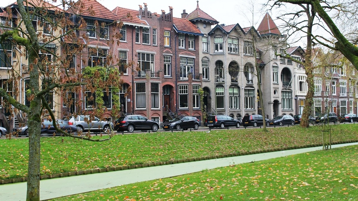 Домики трехэтажные, видно, что дорогие. Велосипедов больше, чем людей. Речка течет через парк, правда, вся зеленая. Рядом из озера торчит табличка: "С 1 марта по 1 ноября" что-то там запрещено. Неужели купаться? Или рыбачить? В общем, подходящее место, чтобы помечтать "а не купить ли здесь квартирку". Еще больше фотографий района можно увидеть в ролике под хорошую музыку.