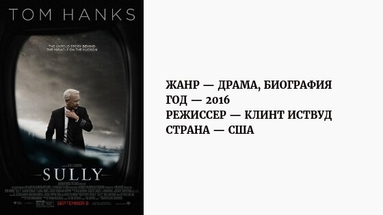 Фильм "Чудо на Гудзоне" | "Sully" Фильм Клинта Иствуда, про реально произошедшее чудо - американский пилот по фамилии Саллиберг (его фамилией назван фильм) посадил пассажирский лайнер с обоими отказавшими двигателями на воду, на реку Гудзон (она омывает Манхэттен, Нью Йорк, протекает мимо небоскрёбов). Мало того, что он смог посадить самолет на воду, посреди главного города Земли, но при этом при посадке ни один человек не пострадал. Это совершенно уникальное происшествие ошарашило многих, и особенно ошарашило страховую компанию, застраховавшую самолет, которая теперь должна выплатить очень, очень, очень много денег. Американское кино часто рассказывает нам о том, что именно страховые компании это реальные монстры, настоящие звери и убийцы, пострашнее русских гадов и плохишей из ужастиков, и этот фильм не исключение. Пилота Саллиберга, явившего миру чудо и спасшего людей, моментально попросили явиться на расследование, и в течении полутора лет прогоняли через ад - страховщики искали