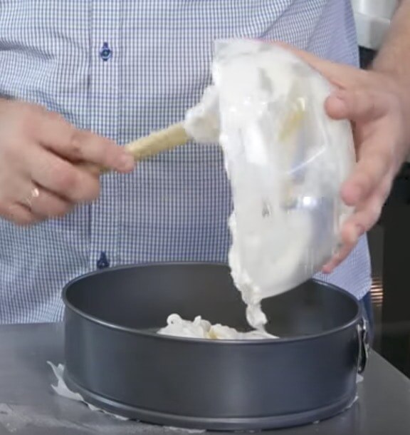 Закрыть форму пищевой пленкой и убрать в холодильник на 3–4 часа.