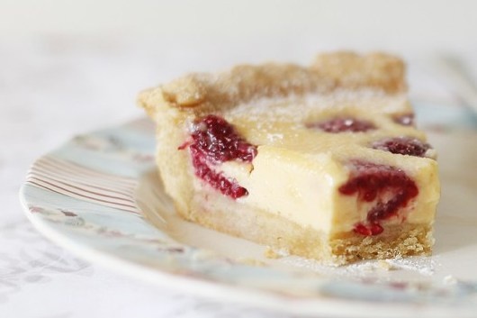 10. Ванильный стручок - ½ штуки Инструкция приготовления 1. Для теста сложите в комбайн холодное масло, муку, миндаль, сахар. 2. Порубите в крошку, добавьте яйцо. 3. Замесите тесто (оно слипнется в комок). 4. Раскатайте тесто, переложите в форму, поставьте в холодильник на полчаса. Наколите и выпекайте при 200 градусах 25 минут. 5. Пока печется, приготовьте заливку. Наломайте белый шоколад. 6. Залейте кипящими сливками, размешайте лопаточкой до полного растворения шоколада. 7. В теплую смесь добавьте желтки, размешайте до однородности. 8. На горячий корж выложите малину (отложите несколько ягод для украшения). 9. Залейте шоколадной смесью. 10. Выпекайте 35 минут при 160 градусах или до готовности. Поверхность должна запечься. 11. Остудите, ук