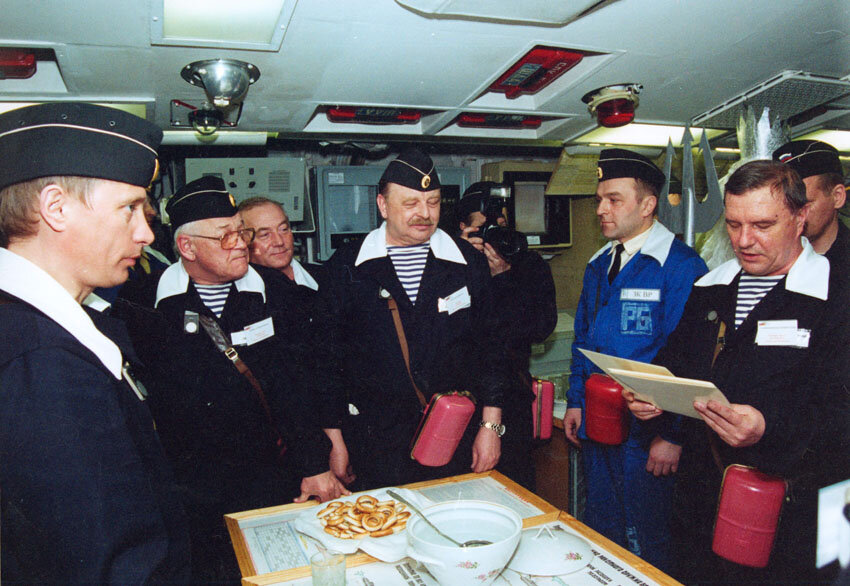 Можно по разному относиться к личностям и их делам , но это уже история , пока новейшая. Апрель 2000 года , борт подводного крейсера стратегического назначения "Карелия" пр.667БДРМ. На борту , кроме экипажа , верховный главнокомандующий с командующим северным флотом В.А.Поповым с сопровождающими их лицами.