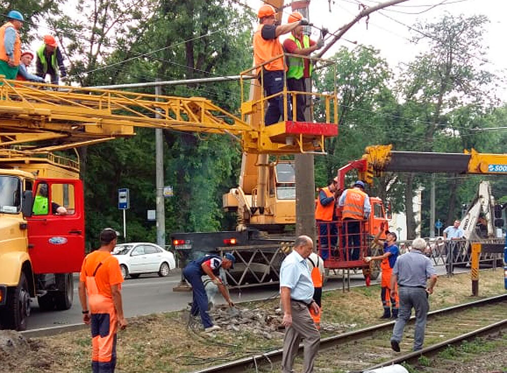 В Краснодаре из-за повреждения опоры временно ограничено движение трамваев и троллейбусов в районе Офицерского путепровода