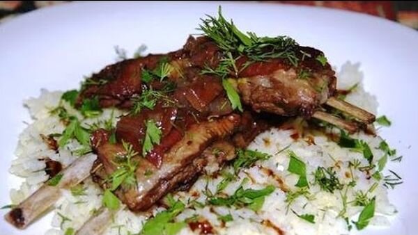 Бараньи ребрышки с луком – блюдо азербайджанской кухни, очень простой рецепт и его можно приготовить даже на природе. Казалось бы – что такое ребра? Очень многие используют бараньи ребрышки исключительно для приготовления бульонов и супов. Однако их можно приготовить и как самостоятельное блюдо, из ребрышек также можно приготовить и шашлык, и это тоже очень вкусно. А подавать бараньи ребрышки можно с зеленью и свежими овощами. Ингредиенты для приготовления бараньих ребрышек с луком Приготовление бараньих ребрышек с луком Ребрышки хорошо промыть. Зерна зиры, черного перца и соль перетереть в ступе, или можно использовать молотые специи. Смесью из специй и солью и натереть ребрышки со всех сторон. Бараньи ребрышки можно заменить свиными Лук репчатый очистить и порезать полукольцами. Не пугайтесь, что лука так много по сравнению с ребрами, он впитает в себя ароматы и вкус, репчатый лук очень хорошо гармонирует с бараниной и дополняет ее. Курдючный жир порезать небольшими кусочками и