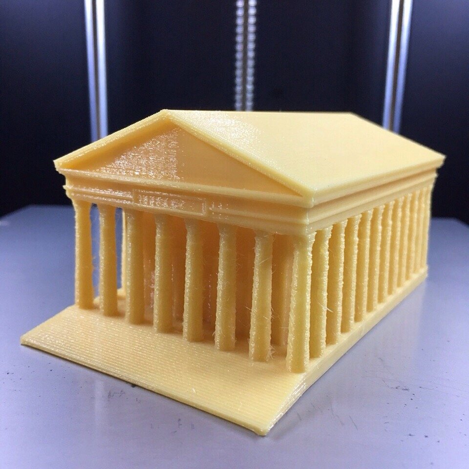 Мы напечатали ее из PLA пластика кремового цвета.