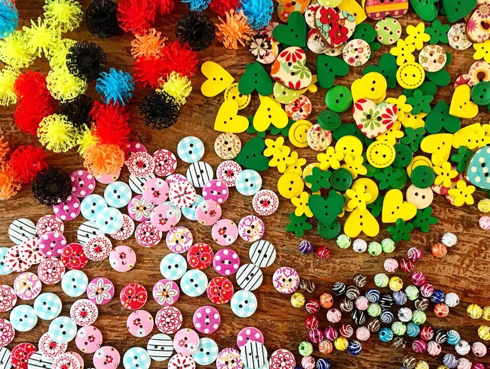 У меня нет каких-то конкретных идей, как использовать все это добро. Ну, с детьми закапываем в рисе и ищем - это понятно. Еще с Валюшей, старшей дочерью, шьем сейчас кое-что из фетра и используем бусы и пуговицы. А так, я просто на все это любуюсь и вдохновляюсь. Над златом чахну и коплю))