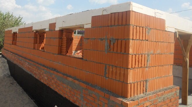 как мы уже писали, кладка керамоблоков занимает меньше времени, они просто больше кирпича и как минимум замещают два стандартных кирпичных изделия.