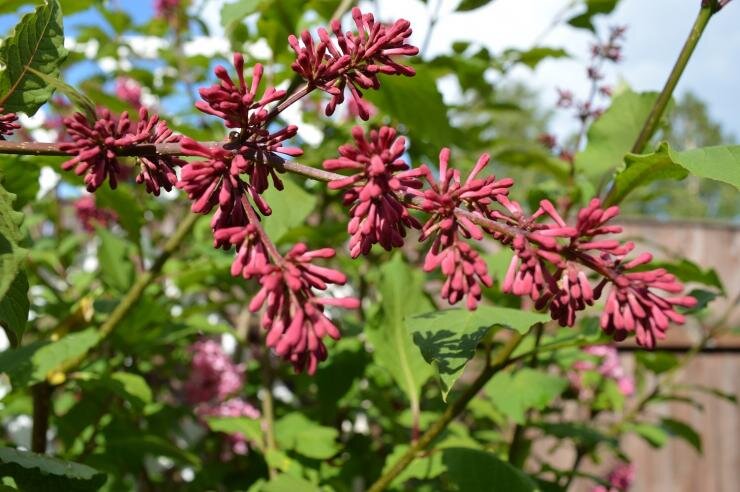 В моем саду в Подмосковье посажен сорт сирени Престон Мисс Канада. Бутоны этого сорта насыщенного красного тона, распускаясь, окрашиваются в яркий розовый, что по мере отцветания становится бледнее. Это один из самых ярких и популярных сортов селекционера. Дездемона
