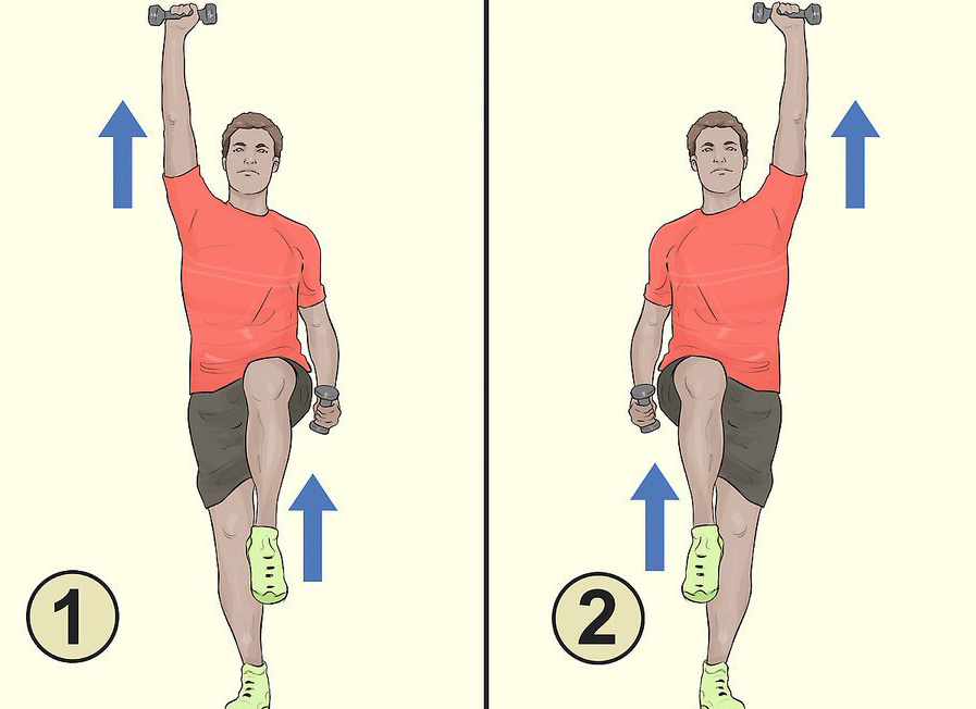 Многие люди хотят стать стройнее, но не всегда имеют достаточно времени, чтобы часами заниматься в тренажерном зале. К счастью, можно тратить всего 10 минут в день на упражнения, не используя какой-либо инвентарь. Секрет такого тренинга заключается в высокоинтенсивных упражнениях, которые стимулируют ваши мышцы к росту. Несомненно, длинная тренировочная сессия лучше короткой, но эффективная 10-минутная ежедневная тренировка сможет помочь вам похудеть и нарастить мышцы. 1. Сделайте подход из 20 повторений противоположных поднятий рук и ног. Держа вес в каждой руке, поставьте ноги на ширину плеч, а руки вытяните по бокам. Поверните левую руку к плечу, а затем поднимите руку прямо над головой. Поднимая руку, одновременно поднимайте правую ногу вверх и вперед, пока бедро не станет параллельным полу. Вернитесь в исходное положение. Сделайте в общей сложности 20 повторений, затем передохните 30 секунд, прежде чем перейти к следующему упражнению. Используйте гантели, весом от 1кг до 2,5кг. Е