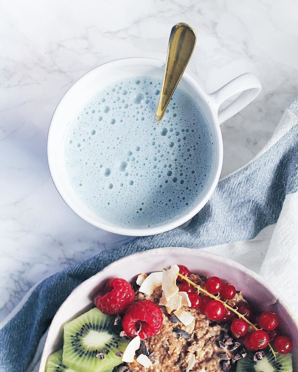 Разбираемся, чем этот напиток отличается от традиционного чая матча и что он может вам дать, помимо заветных лайков в Instagram. Что это? Голубая матча — это натуральный порошковый чай, который производится из высушенных лепестков цветка клитории тройчатой (Butterfly Pea Tea). Это растение ярко-синего цвета жители Юго-Восточной Азии издавна используют в качестве добавки к пище. Интерес к волшебному голубому порошку перекочевал на Запад — особенно голубая пудра востребована при приготовлении десертов и напитков. Чем голубая матча отличается от зеленой? Сразу скажем, что голубая матча имеет мало общего с зеленой. Зеленая матча изготавливается из листьев японского зеленого чая, в которых содержится большое количество хлорофилла. Именно он отвечает за яркий зеленый цвет чая и за его способность выводить из организма токсины. Зеленая матча также отличается высоким содержанием антиоксидантов, которые улучшают метаболизм, помогают сжечь жировые отложения, контролируют уровень сахара в крови,