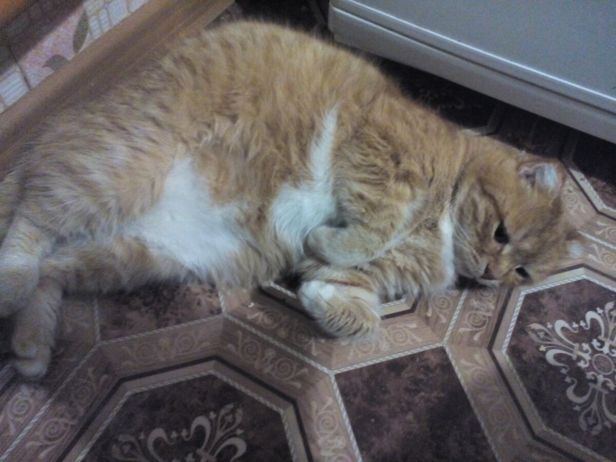 Хотелось бы рассказать о еще одном коте, который очень сильно запал мне в душу. Однажды вечером открывая дверь в подъезд, я был очень удивлен, на пороге моей квартиры сидел кот, он не стал убегать, жалобно мяукать, он просто довольно вальяжно прошел ко мне в квартиру, с полным осознанием планировки, прошел на кухню поел из миски Кузи (кто такой, читайте в моих статьях), и важно пройдя в гостиную, лег на диван. Его уверенность и наглость, очень удивила мою семью, и кота. Уходить он не собирался, вытянувшись на диване, он проспал до позднего вечера, и самостоятельно попросился на улицу. Мы подумали, что кот просто устал и решил передохнуть, но утром, около двери сидел Кузя, и рядом с ним это рыжее чудо, которое мы в последствии прозвали Мурзиком. Мурзик был замечательным котом, очень ласковым, мурчал он так, как будто его гладят впервые. Своим рыжим цветом и характером, он напоминал того кота из мультика – был жирным, ленивым и абсолютно добродушным. С приходом лета, а в частности жары