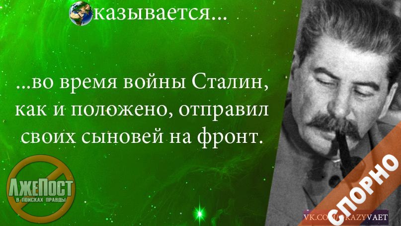 Отправлял ли Иосиф Сталин своих сыновей на войну? Смотря каких...