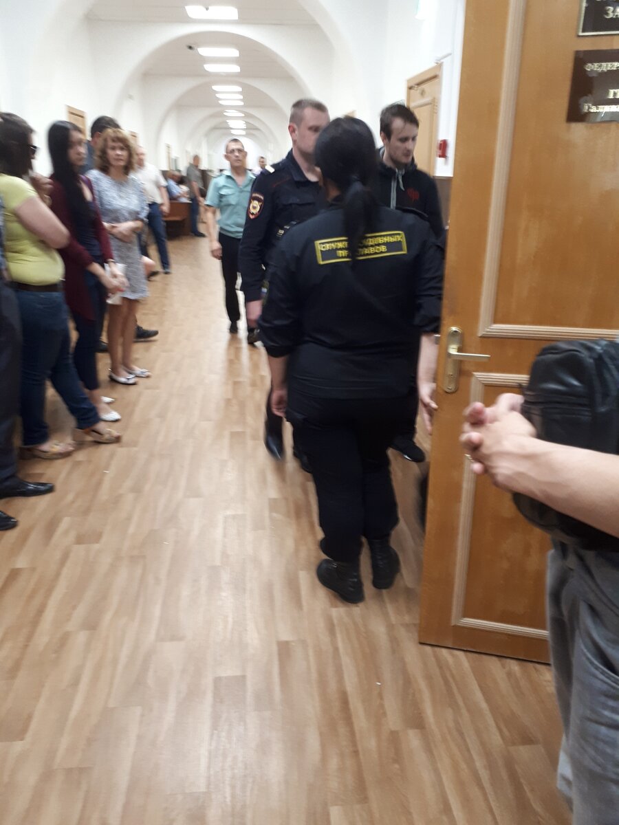 Напоследок хочу заметить – в прекрасной России будущего во всех судах можно будет свободно снимать фото и видео, а то сейчас это всё под строжайшим запретом, какой-то совковый пережиток. Вот с сегодняшнего суда я сумел только на телефон сфотографировать в коридоре, как Владимира вели в зал заседания, и всё. В зале суда я уже не мог производить съемку, потому что не получил у них аккредитацию как СМИ, но это было невозможно сделать, потому что о суде я узнал поздно ночью.