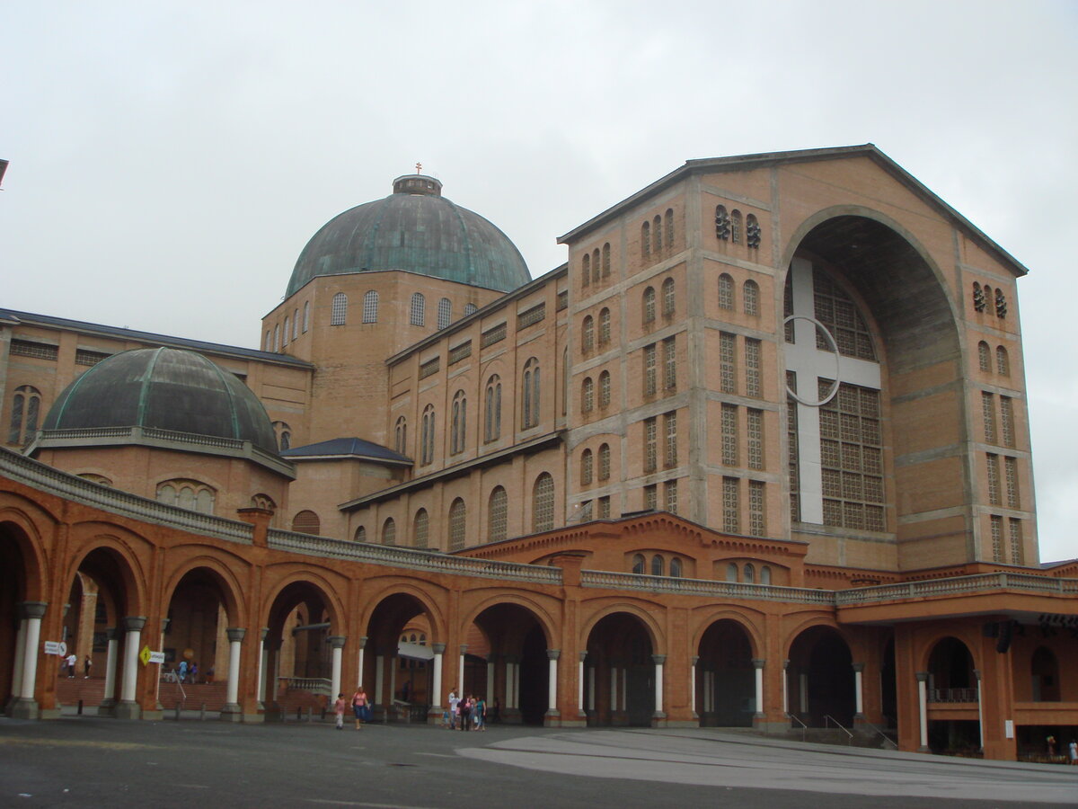 Так мы заехали в городок Апаресида. В Бразилии Апаресидой называют Богородицу, а городок носит свое название в честь гигантского католического храма, который там расположен. Этот храм, насколько я знаю, крупнейший католический храм в Бразилии. Мы ехали по трассе, когда я увидела это невероятное строение издалека. Жу там бывал неоднократно с родителями, и мы заехали посмотреть. Впечатляет очень.