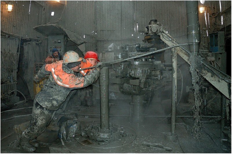 Это наши бурильщики Северяни ХМАО-ЮГРА, пашут как рабы. Независимо от погоды 53 мороза, или 37 жары, или сильный дождь с ветром, они пашут. Чтобы вовремя сдать бурувую, многие из них умирают на буровых не доживая до 50 лет,Путин какой пенсионный возвраст ты собираешься повысить, иди на пару с Медведевым постой на забурке в цементе хотя бы час, и посмотришь какой там ад, а зарплата у них копейки. Сколько молодых жизней ушло не дожив до 50 лет.