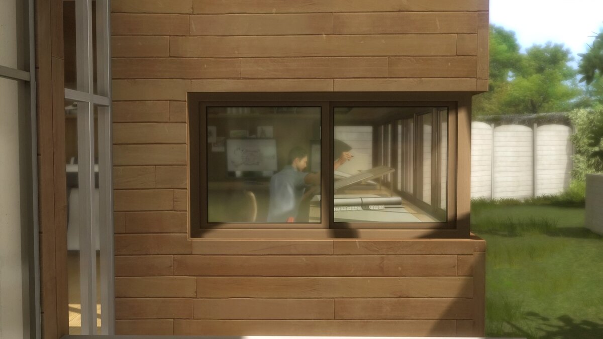 Тем не менее, мне кажется, Итан прекрасно понимает всю ненадежнось дома - именно поэтому он крайне коварно вынес свой кабинет в одноэтажную пристройку.