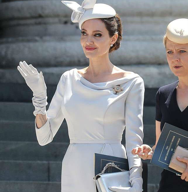 Уже давно актриса не радовала своих поклонников столь цветущим видом. Многие успели устать от все время темных нарядов Анжелины, которые не только прибавляли ей возраст, но и вгоняли окружающих в депрессию. Новый образ актрисы получился по-настоящему царственным, словно к ней вернулась молодость. Для посещения торжественной службы в Соборе Святого Павла в Лондоне 43-летняя знаменитость выбрала белый тотал-лук цвета слоновой кости, дополненный утонченными перчатками и шляпкой, свойственными королевской британской семье. Несомненно, именно улыбчивая и приветливая Анжелина стала самой яркой красавицей этого события. Праздничная месса была посвящена 200-летию Ордена Святых Михаила и Георгия, обладателем которого является и сама актриса. В 2014 году она получила орден из рук самой Елизаветы II за гуманитарную деятельность. Поклонники актрисы уже успели оценить прекрасный внешний вид Анжелины и выразили надежду, что впредь она и дальше будет следовать новому имиджу. Смотрите также Топ-2