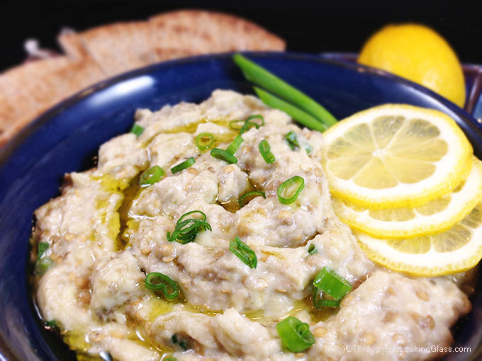 6-8 порций Подготовка: 50-60 мин. Приготовление: 25 мин. Баклажаны прекрасны, как нам кажется, в любом виде. Даже в сыром они просто очень красивые. А уж в запеченном, жаренном или тушенном! Существуют сотни способов готовить эти благословенные плоды, в каждой стране свои. Баба гануш - знаменитая закуска, вы найдете ее в меню любого арабского или израильского ресторанчика. В греческом варианте она будет называться мелидзаносалата. 6 крупных баклажанов 3-4 зубчика чеснока сок 1 лимона 6 ст. л. тахины (кунжутной пасты) крупная морская соль, черный перец петрушка оливковое масло 1. Целые баклажаны , не отрезая хвостик, наколите вилкой со всех сторон. Положите на выстланную фольгой решетку в разогретую до 200 °С духовку и запекайте 40-50 мин., в зависимости от размера плодов. У готовых баклажанов кожица чернеет и почти обугливается, а внутри они очень мягкие. 2. Готовые баклажаны слегка остудите, разрежьте вдоль пополам и аккуратно выньте ложкой всю мякоть. Разомните мякоть в
