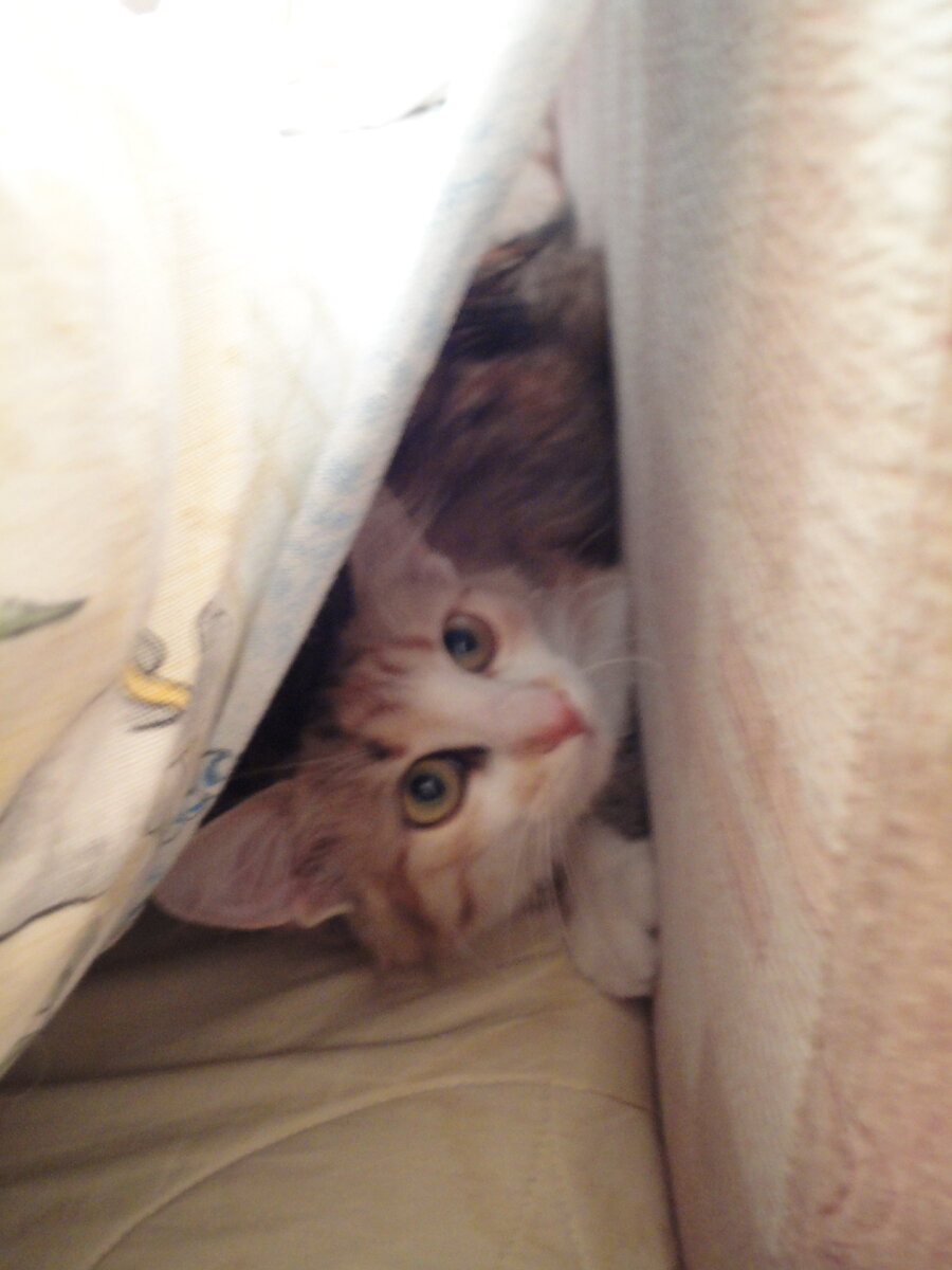 Если честно, ну люблю я прятаться! Точнее, я не специально прячусь, просто нахожу себе укромные местечки и там сплю или размышляю о бренности жития. В общем, сидела я на подоконнике, смотрела, как за окном бабочки порхают. А тут меня стали искать. Зачем, я так и не поняла. Искали, искали, кис-кискали. Мне уже стало интересно, когда меня заметят - сижу же на виду! Короче, в комнате меня не нашли, побегали по дому. Решили, что я опять на улицу сбежала. Пошли туда искать. Мне уже и скучно стало, подремала немного. А тут Мама меня из сада заметила, что я на окне сижу. Пришла, сфоткала и сказала, что я глупая и бессовестная. Это почему вдруг?!