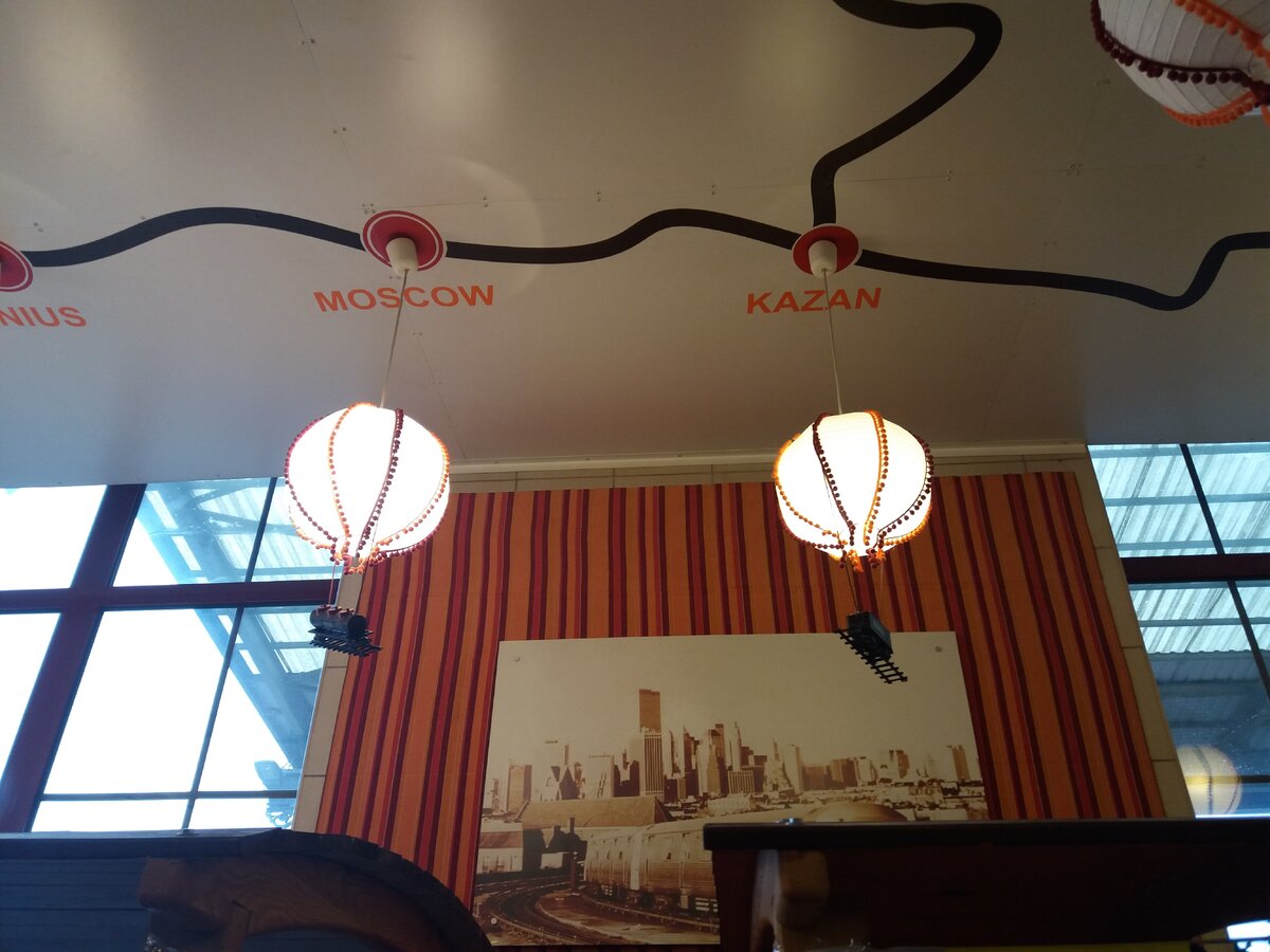 Путешествие по Литве началось с завтрака на железнодорожном вокзале Вильнюса. Место особо не примечательное, но в здании вокзале есть музей который на момент нашего приезда был закрыт. Мы приехали рано утром. Нас вполне хорошо поняли на русском и без проблем обслужили. Но мы пока не знали что в Каунасе все будет иначе. Сделав фото потолка кафе мы вскоре уехали на электричке в Каунас.