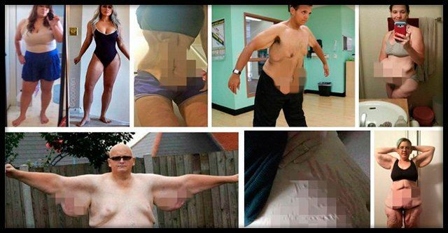 Прекрасный момент, когда человек осознал, что ему уже тяжело жить в своем весе, намного превышающем все известные нормы и начал принимать меры для похудения. Но правда о том, что после таких перепадов может случиться, помимо самого похудения, с человеческим телом — ужасна. Предупреждаем — зрелище не для слабонервных В первую очередь — обвисшая кожа. Чем больше изначальный вес и чем позднее человек начал его сбрасывать, тем кожи остается больше, т.к. она теряет свою эластичность и вернуть ее «на место» , порой, невозможно никакими массажами и тренировками