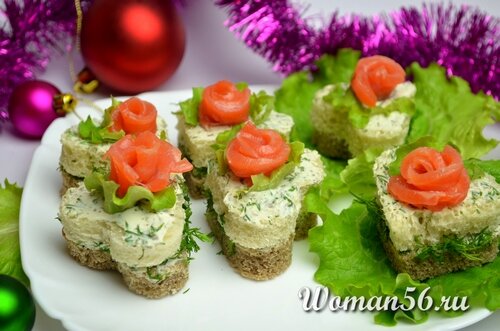 Насыщенная красный цвет рыбной мякоти будто специально создан для оформления цветочных лепестков. Бутерброды с красной рыбой могут быть плоскими и многоярусными. Они настолько красивы, что сначала хочется полюбоваться, а потом уже попробовать.