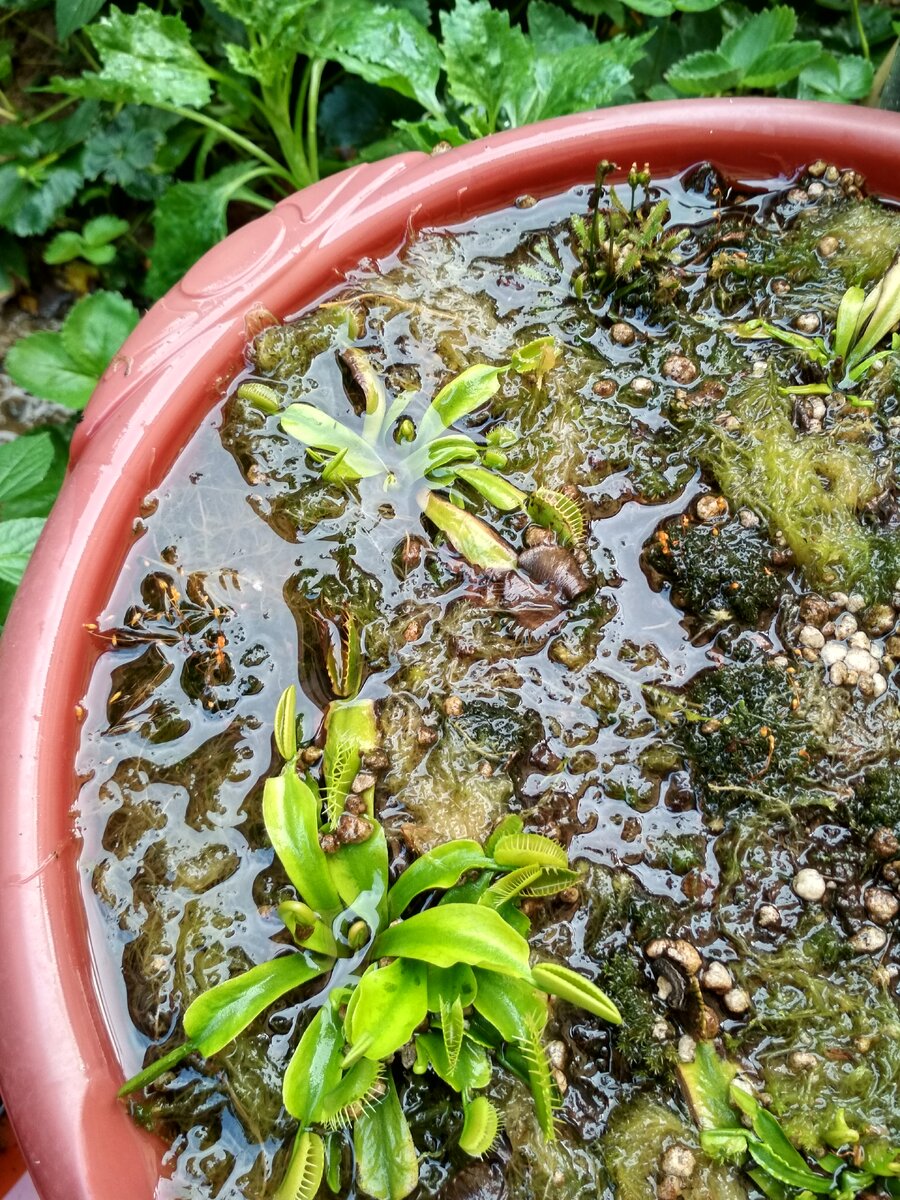 Сегодня в Адлере большой потоп из-за проливного дождя. Город встал в пробках, и нашим хищникам тоже досталось. Не пробок, конечно, досталось, а чистейшей дождевой воды. Это я уже успела слить часть воды, а вообще из горшка выливалось через край. Мухоловки, конечно, любят болотистую местность, но не настолько же )) А вот с саррацениями все немного сложнее Видите? Все неприкрытые кувшины доверху залиты водой. Некоторые даже сломались от тяжести воды. А вот находчивые муравья заползают на край ловушки, чтобы попить))) Что делать с кувшинами - непонятно... Потому что неясно, как саррацении справляются с такими задачками в природной среде. Хотя, возможно, в природе у них и не возникает таких проблем. Саррацения растет на болотах Центральной Ирландии, кое-где в Северной Америке. Вряд ли там идут тропические ливни.... Справочники хищных растений говорят, что саррацения любит болотистые местности, растет вблизи озер и рек, поэтому важно обеспечить постоянную влажность почвы. Ахаха, знала