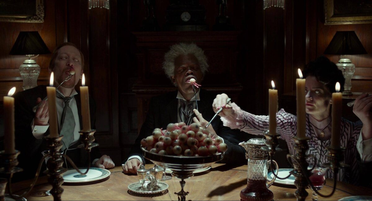 В фильме «Дом странных детей» монстры употребляют в пищу глаза жертв, чтобы поддерживать свою жизнеспособность. Кстати, в книге, по которой снят фильм, эти твари, называемые "пустотами", ели самих людей. Но поедание глаз более неординарно, тонко и жутко. Сценаристы картины доработали замысел автора книги Ренсома Риггза, сделав его более символичным для кинематографа. Картина Тима Бертона «Большие глаза» рассказывает о художнице, которая рисует портреты людей с огромными глазами. Фильм снят по мотивам книги-автобиографии Маргарет Кин «Большие глаза. Загадочная история Маргарет Кин». Во многих фильмах отличительной чертой персонажа являются его глаза. Они могут быть красные, словно налитые кровью. Могут быть белые совсем зрачков и черные, как из преисподней. Глаза Бледного человека в картине «Лабиринт фавна» и вовсе располагались на ладонях. Также довольно часто с глазами киноперсонажей происходят странные или пугающие вещи. Например, у героя Арнольда Шварцнегера в картин