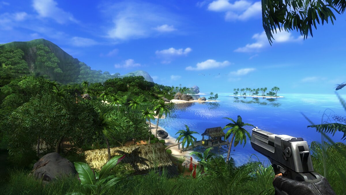 Главным же достоинством первой Far Cry была графика совершенно сногсшибательной для 2004 года красоты. Вместо привычных для игроков бесконечных серых коридоров, нас забросили в райский уголок посреди Тихого океана, который был воссоздан с помощью революционных технологий от старых богов всея графена – студии Crytek.