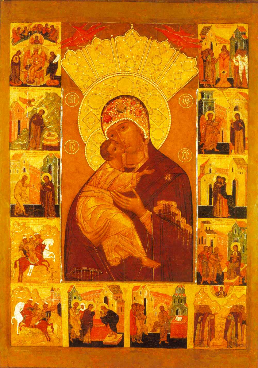 Владимирская икона Божьей Матери всегда помогала храбрым русским воинам выигрывать решающие для страны битвы. Эта икона – одна из наиболее известных и чтимых святынь и в ее честь существует целых три праздника. Как святыня появилась на Руси Если верить преданию, то Владимирская икона Божьей Матери была нарисована апостолом Лукой в то время, когда еще жила Богородица. Образ был написан апостолом на одной из тех досок стола, за которым обедали Спаситель и Богородица вместе с Иосифом. Эта икона достаточно долго находилась в городе Иерусалиме вплоть до 450 года, потом ее отвезли спустя некоторое время в Константинополь. Уже в начале 12 столетия с образа была сделана копия и отправлена в качестве подарка князю Руси Мстиславу. С 1131 года она расположилась в Богородичном монастыре, который был построен в Вышгороде. По всей Руси можно было услышать сказания о невероятной силе иконы. Защита для каждого верующего человека В Москву икона попала только в 1395 году, после завоевания ханом Тамерл