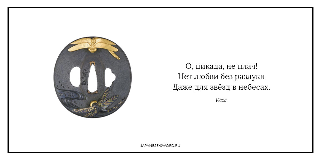 Лао Цзы как-то сказал, что внутреннее можно передать через внешнее. Примерно об этом же говорил Гермес Трисмегист в своем «что вверху, подобно тому, что внизу». Сегодня об этом вспоминаю я, когда пишу о проекте «Поэзия и цуба». За поэзию отвечают лучшие образцы японской стихотворной традиции хокку, а за непонятным словом «цуба» скрывается элемент меча, защищающий руку от оружия противника. Вместе они олицетворяют внутреннее и внешнее, переплетаясь и дополняя друг друга. Несмотря на свой утилитарный характер, у цуба есть свой секрет и заключается он во внутренней лаконичной красоте, что отражается на поверхности несколькими скупыми штрихами, сюжетным изображением из повседневной жизни или тонким хитросплетением причудливых форм. Так сразу и не скажешь, что виновниками этой красоты стали поселковые самураи, которые в свое время подстегнули моду на разукрашивание мечей и деталей экипировки. И если поначалу дело обходилось только оформлением ножен, то потом дело дошло и до вполне рядовых