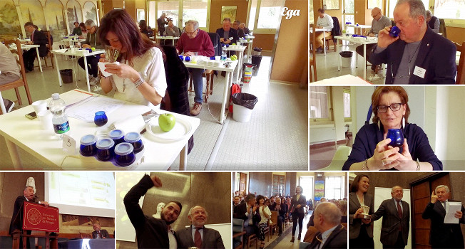 Наутро после вечернего шума и гвалта — сосредоточенная тишина и самая серьезная из всех возможных серьезность обстановки. В просторном помещении в Торговой палате Перуджи каждый сидит за отдельным столом и углубленно дегустирует один за одним образцы, внимательно прислушиваясь к информации, поступающей от рецепторов, на которые воздействует масло. Перед каждым дегустатором — официальные листы для оценок, а также стакан воды и зеленое яблоко: они нужны для того, чтобы перебить ощущения от предыдущего масла при переходе к следующему.