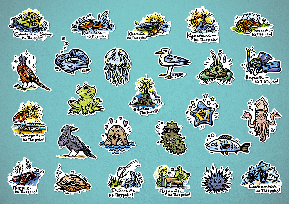 Несмотря на безуспешные попытки блокировки мессенджера Telegram в России он остается популярным и новости этого сайта оперативно можно читать именно в нем. Вдохновляясь опытом PrimaMedia с тематическими локальными стикерами было решено разработать стикеры района Патрокл во Владивостоке. Район уникален своим расположением, экологической чистотой (ведь проблему с канализацией в озере мы почти решили) и красотой природы. Автором нового набора стикеров стала иллюстратор Екатерина Титова. Работы Екатерины отличаются особым стилем, а тематика передает атмосферу нашего морского города и края, именно поэтому они уже нашли отражение в сувенирной продукции, одежде и других носителях. В 26 стикерах "#ЛюблюПатрокл" представлено две серии - эмоции, выраженные представителями местной фауны (чайка, фазан, краб и прочие) и слоганы по видам время провождения (велосипед, прогулки, SUP, купание и т.д.). Чтобы установить стикеры в Telegram нужно открыть ссылку t.me/addstickers/patrokl (если у вас р