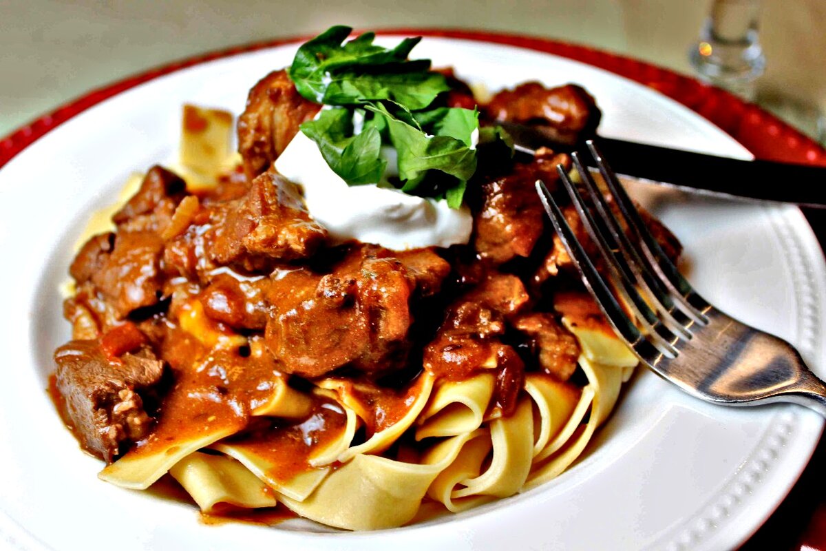 Что больше всего любят мужчины на завтрак, обед и ужин? Конечно же, мясо! Порадуйте любимого настоящим гуляшом - он точно останется доволен! Нам понадобится: Приступаем к приготовлению: Для начала подготовьте свинину - помойте, просушите, очистите от лишнего жира и нарежьте кубиками 3 сантиметра. Очищенную морковь натереть на крупной терке, лук нарезать полукольцами. Сковороду хорошенько прогреть с подсолнечным маслом и выложить на нее мясо в один слой. Обжаривать свинину со всех сторон, не забывая помешивать. Это позволит мясу остаться сочным! Теперь добавим к свинине овощи и продолжить обжаривать, пока цвет овощей не изменится. Добавляем муку, хорошо перемешиваем и обжариваем все вместе еще две минуты. Добавляем сметану и томатную пасту, перемешиваем. Добавляем стакан горячей воды и все очень хорошо перемешиваем. Накрываем наш гуляш крышкой и доводим до кипения. После убавляем огонь и тушим 40 минут. Перед окончанием приготовления блюда солим и томим еще 2 минуты. Гуляш готов! П
