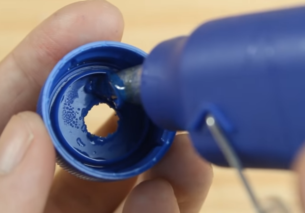 Сделайте отверстие в пробке от бутылки. Внутрь налейте немного клея и закрепите точилку.