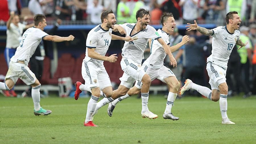 Сборная России в упорной борьбе одолела команду Испании в 1/8 финала чемпионата мира по футболу. Основное и дополнительное время матча завершилось вничью, а победитель определился в серии пенальти. Матч неудачно начался для российской команды. Подопечные Станислава Черчесова пропустили уже на 11-й минуте. Сергей Игнашевич при подаче в штрафную площадь срезал мяч в ворота Игоря Акинфеева. Россияне сумели отыграться в концовке первого тайма. Испанский защитник Жерар Пике сыграл рукой в штрафной площади, и арбитр Бьорн Куйперс назначил пенальти, который уверенно реализовал Артем Дзюба. Второй тайм проходил при явном преимуществе сборной Испании, россияне отвечали редкими контратаками. Тем не менее зрители, собравшиеся в «Лужниках», не увидели забитых мячей. Основное время матча завершилось результативной ничьей. Для определения победителя было назначено дополнительное время. Рисунок игры не изменился. Испанцы по-прежнему владели инициативой, оказывая давление на оборону российской команд