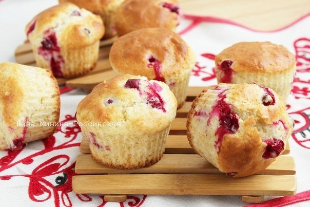 крахмал — 1 ч. ложка Приготовление: Взбиваем яйца с сахаром, добавляем кефир и растительное масло, перемешиваем. Всыпаем муку с разрыхлителем и кокосовую стружку, перемешиваем. Обваливаем в крахмале или муке ягоды клюквы или брусники (свежие или замороженные) и высыпаем в тесто. Раскладываем тесто по формочкам и выпекаем при 180-200 С в течение 15-20 минут. Приятного чаепития! Автор идеи — Нина Минина-Россинская Подпишитесь на наш сайт, чтобы не пропустить самое интересное