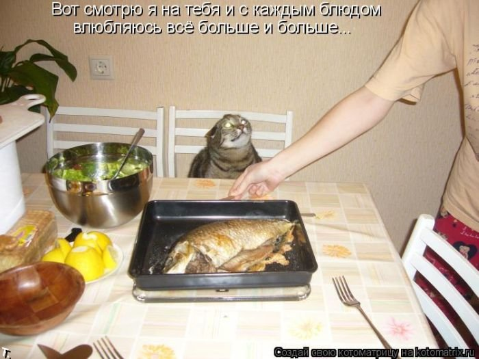 – Главным образом, это зависит от того, кто вы – человек или мышь… Насколько бы рациональным человеком ты не был, как бы не осознавал всю бессмысленность происходящего - всё равно будешь говорить со своим котом. Вышли с женой из магазина, а на ступеньках котёнок, няшный весьма. Жена умилённым голосом: – Какой хорошенький… Давай ему голову оторвем. Люди вокруг начали беспокоиться и оборачиваться, пока мы рыбу из пакета не достали. HumorNet.ru Мой кот проснулся на подоконнике, посмотрел одним глазом в окно на окружающий мир, и заснул опять. И мне кажется, что он абсолютно прав. Признавайся, ты тоже подносил кота к зеркалу и говорил ему: "Смотри, усатая морда, это