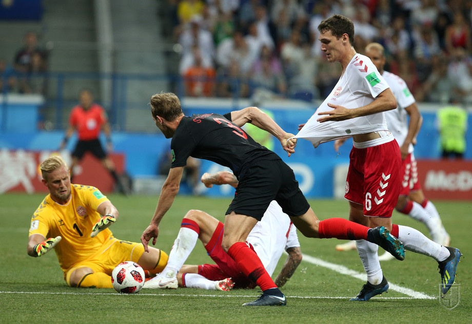 Главные герои-вратари. Пока вся Россия празднов ала исторический выход сборной России в 1/4 финала Чемпионата мира, Хорватия и Дания решали, кто будет соперником сборной России. Начало. Перед началом матча было ясно, что сборная Хорватии явный фаворит матча. Если вы пропустили начало матча, то мне вас очень жаль. Первые минуты матча были не много шокирующим для хорватов. Йоргенсен воспользовавшись рикошетом , уже на 1-й минуте вколотил мяч в сетку ворот сборной Хорватии. Хорваты не много погрустили и ответили. Марио Манджукич с помощью всё тех же рикошетов забил ответный гол в ворота сборной Дании. И это спустя 4 минуты после начала матча, которое выдалось прямо огонь. Всё началось заново для команд. Основное время. Если в начале матча команды забили аж 2 гола за 4 минуты, то основное время было не много скучным. Кратко это можно описать так: Датчане хотели победить, двигались активнее хорватов, создавали моменты, но не хватало мастерства. Хорваты играли очень лениво, почти не создавал