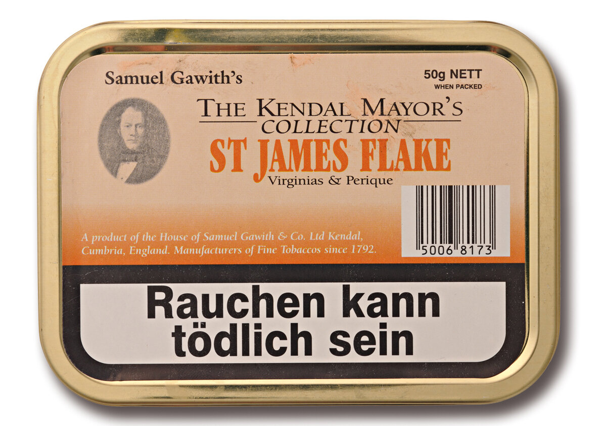 "Трубочный табак Samuel Gawith «St. James Flake» — это роскошная смесь Вирджинии и Перика. Великолепный представитель табаков Английской вкусовой группы с щедрой долей Перика с плантаций St. James Parish, LA." Состав: Perique, Virginia