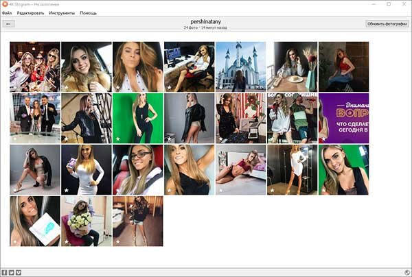 Что такое Инстаграм знают многие, и большинство из тех, кто знают про эту социальную сеть в ней же и зарегистрированы. Кто-то просто смотрит чужие фотографии, а кто-то сам их туда выкладывает через свой аккаунт. И не редко, хочется скачать фото из Инстаграм, и если одну - две можно быстро скачать, то, когда речь заходить об нескольких десятков фотографий и более, тут уже обычным способом придется долго и упорно поработать. Чтобы сделать этот процесс быстрым и простым, и скачать фото из Инстаграм как можно больше и быстрее, следует воспользоваться такой бесплатной программой как 4K Stogram. Это простое и удобное приложение, которое позволяет скачивать сразу все фотографии указанного пользователя. Принцип действия программы весьма простой, нужно указать имя пользователя в Инстаграм, и программа сама найдет его аккаунт и начнет скачивать все фотографии на компьютер. Помимо фотографий, 4K Stogram так же может скачивать и видео в формате MP4. При необходимости, можно скачивать фотографии