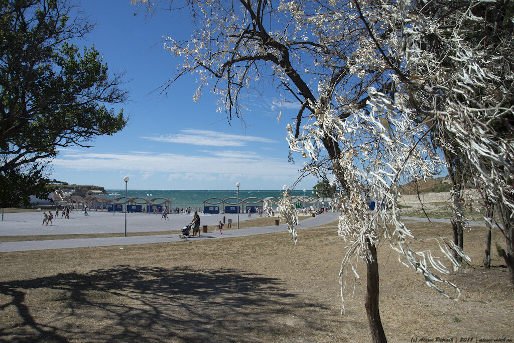 Несколько месяцев назад в Севастополе возле пляжа "Солнечный" открылся сквер имени Анны Ахматовой. Многие уже побывали там, сделали фотографии, поделились своими впечатлениями в соцсетях и блогах. Мы тоже были здесь месяц назад. Тогда был пасмурный день, который навевал тоскливое настроение. Я даже делал какие-то снимки. Но они так и остались лежать в какой-то папке на моем компьютере. Зато в конце июня здесь было тепло и солнечно. Дул, правда, ветер и море немного штормило. Но мы все равно не купались, а только прогуливались по дорожкам парка, дыша свежим морским воздухом. И фотографировали.