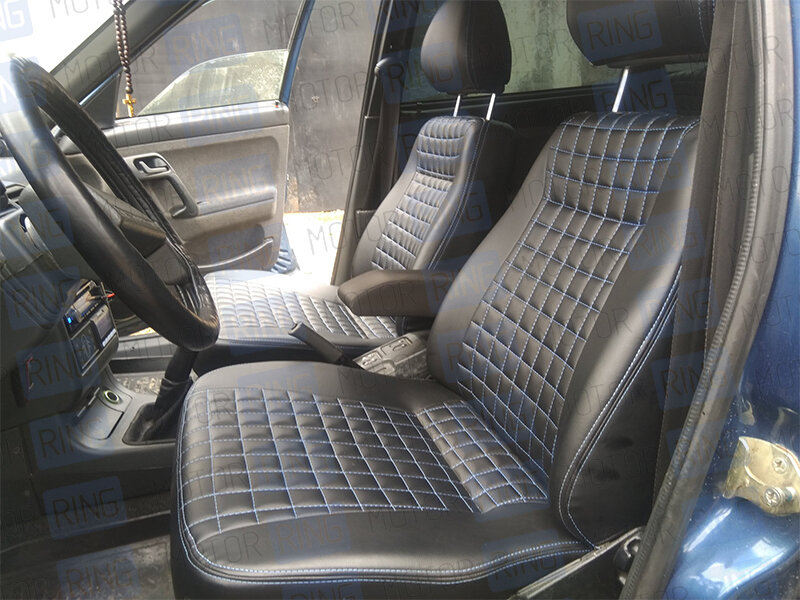 Основное причиной, по которой владелец решает заменить обивку сидений в автомобиле — это ее износ: потертости, грязь, дырки (часто прожигается сигаретами). В большей степени с такой проблемой сталкиваются и владельцы «десяток». Даже машины последних годов выпуска колесят по дорогом уже несколько лет. Когда решение о перетяжки сидений ВАЗ 2110 принято, встает вопрос о выборе новой обивки сидений. Некоторые выбирают стандартную тряпичную обивку, а кто-то решает купить кожаную обивку сидений ВАЗ 2110, но не чехлы. Кажется, что чехлы на сиденья уже выходят из моды, и владельцы автомобилей предпочитают полностью перетянуть салон вместо покупки чехлов. Для этого есть несколько причин: На этой странице мы представляем Вам обивку сидений из экокожи на ВАЗ 2110, которая имеет рисунок, выполненный с помощью строчки ткани нитками в форме квадратов. Подробный рассказ об обивках сидений из экокожи смотрите на видео: Заинтересовались покупкой обивки сидений? Ищите больше информации на сайте интерн