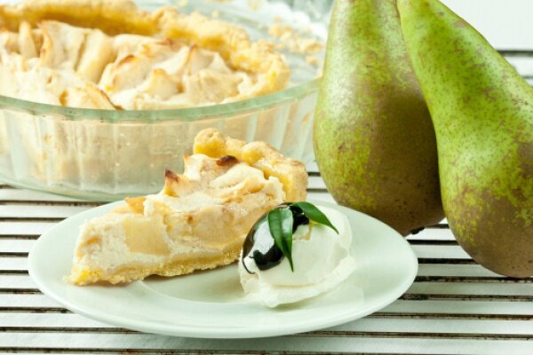 Пирог из нежного творожного теста с карамелизованными грушами. Ингредиенты Мука250 г творог350 г разрыхлитель2 ч. л. ваниль1 ч. л. лимон (сок и цедра)1 шт груши3 шт яйца3 шт сахар150 г коньяк1 ст. л. сахарная пудрапо вкусу Способ приготовления