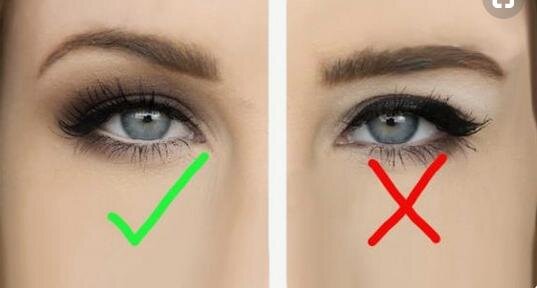 1.База под тени. Не позволят скататься теням в складках. Наносите не только на подвижное веко, а полностью до брови. Сверху обязательно припудрить светлыми матовыми тенями или хотя бы пудрой. Это очень важный момент! Если нет базы под тени можно использовать капельку тонального средства или консилер, но в любом случае припудрить надо. 2. Матовые тени наносятся на саму складку и чуть выше, это позволяет скрыть эту проблему. Не используй тени с мерцающие и блесками – это только привлечет внимание! Если хочется блестящих теней, нанеси их только на подвижное веко и в уголок глаза. 3. Стрелки для глаз. Лучше использовать лайнер для глаз, а не карандаш, чтобы он не отпечатывался потом на нависшем веке. Рисуем тонкую линию на подвижном веке, немного утолщая к внешнему уголку глаза. Кончик стрелки не должен уходить под веко. 4. Красим ресницы правильно. Завиваем ресницы специальными щипчиками и потом красим подкручивающей тушью. За такими ресницами будет меньше видно нависшее веко. 5. Растуш
