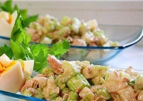 Для любителей салатов из рыбных консервов. Сардина с сельдереем, пальчики оближешь!