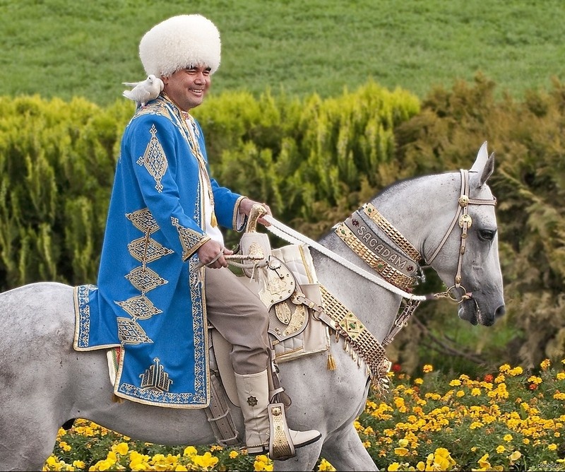 Конь, принадлежащий президенту Туркменистана Гурбангулы Бердымухамедову, преодолел дистанцию в 10 метров за за 4.19 секунды. На задних ногах!
